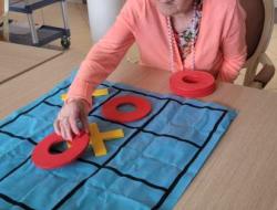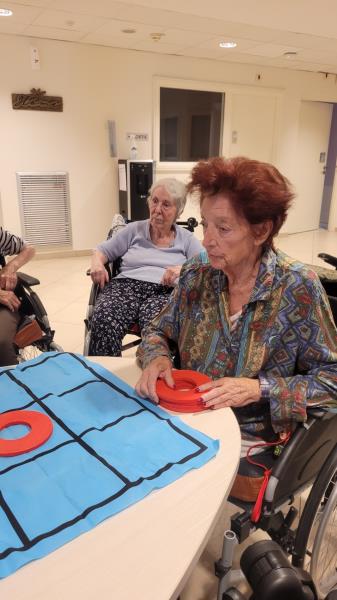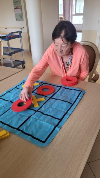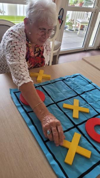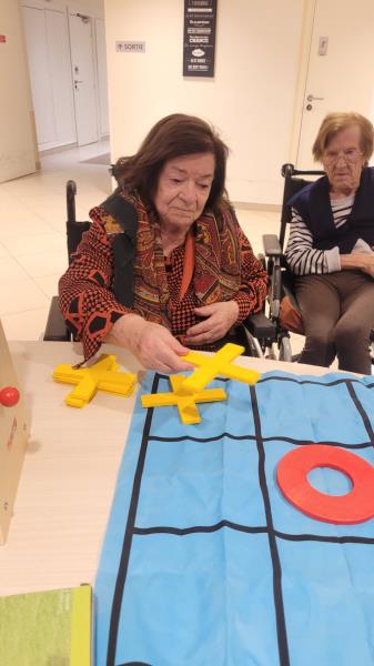 Aujourd’hui, un atelier ludique a été organisé au sein de l’établissement, proposant aux résidents de participer à des parties de jeux classiques revisités en grand format. Le Puissance 4, dans sa version géante, a ainsi permis de stimuler la réflexion stratégique et la concentration des participants. Parallèlement, le jeu du Morpion a offert des moments d’échanges rapides et conviviaux.