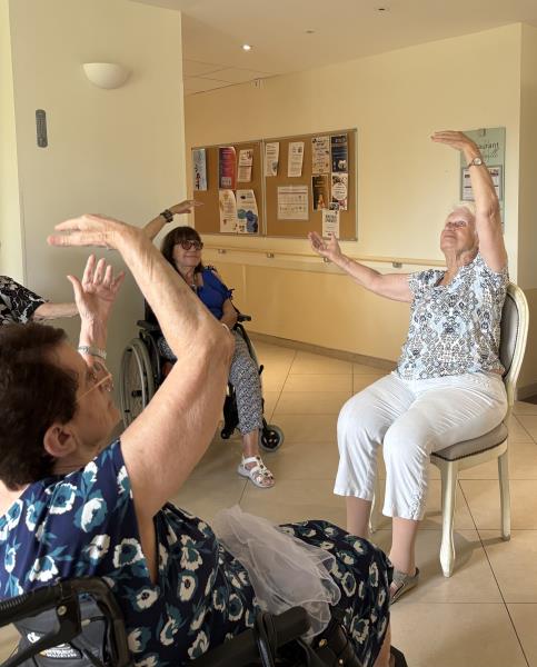 Il n'y a pas d'âge pour danser. Deux fois par mois, nos résidentes ont le plaisir de profiter d'une séance de danse adaptée sur chaise. C'est un atelier très apprécié par nos résidentes depuis plusieurs mois.