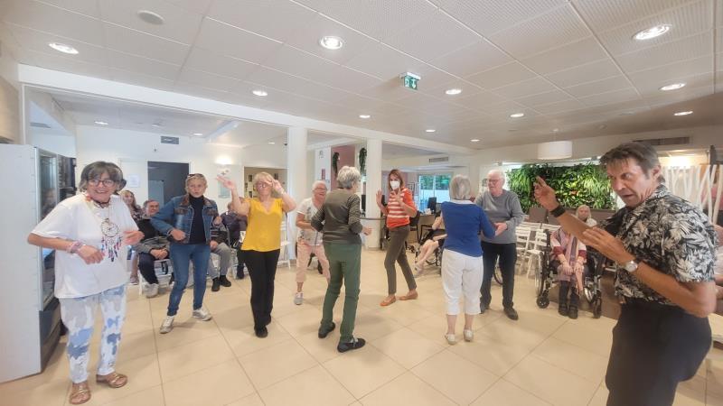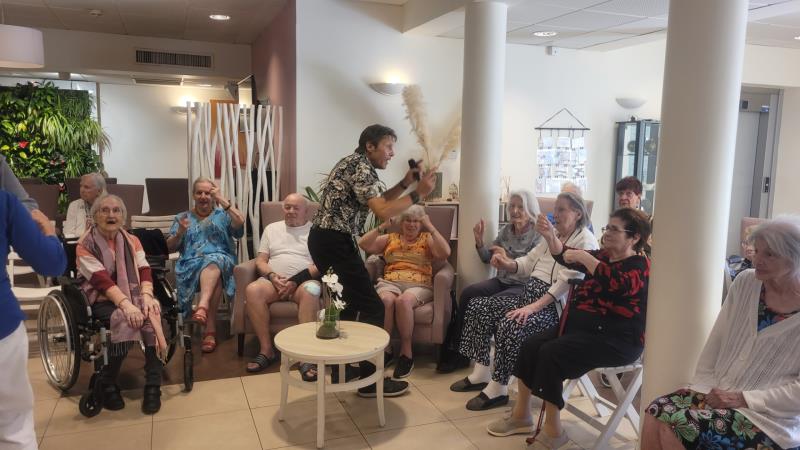 Ce mois de septembre, les résidents de l’EHPAD Les Jardins de Fanton ont célébré leurs anniversaires dans la joie et la convivialité. Pour l’occasion, le chanteur Dregan est venu offrir une prestation musicale pleine de vitalité et de bonne humeur. Le moment gourmand de la fête a été marqué par un gâteau d’anniversaire préparé avec soin par le cuisinier de l’établissement.
