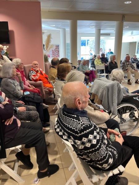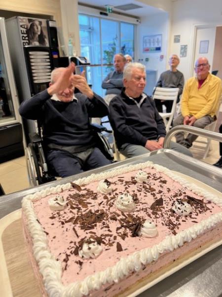 L’après-midi a été animé par la chanteuse Marion, qui a apporté une ambiance agréable grâce à sa prestation musicale. Un gâteau d’anniversaire, préparé par le chef de cuisine, a ensuite été partagé avec les résidents.