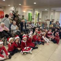 Publiée le 13/12/2022Le mardi 13 décembre, les enfants de l'école internationale "Pain de Sucre" de Pégomas sont venus chanter des chants de Noël et offrir des chocolats aux résidents. Pour les remercier, les résidents ont offert un sachet de bonbons à chaque enfant. Un bel échan [...] Lire la suite