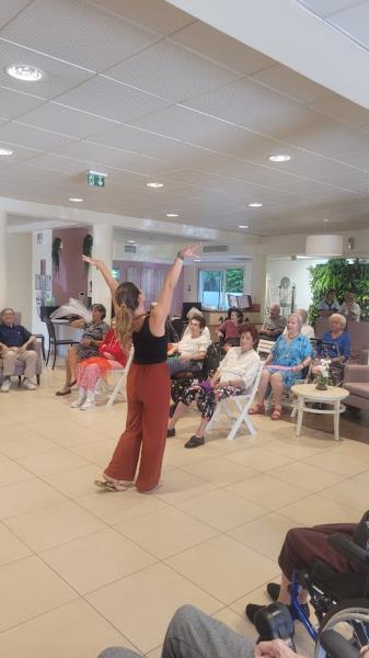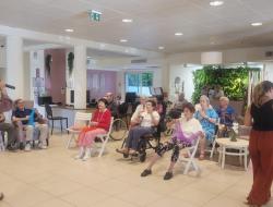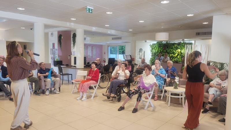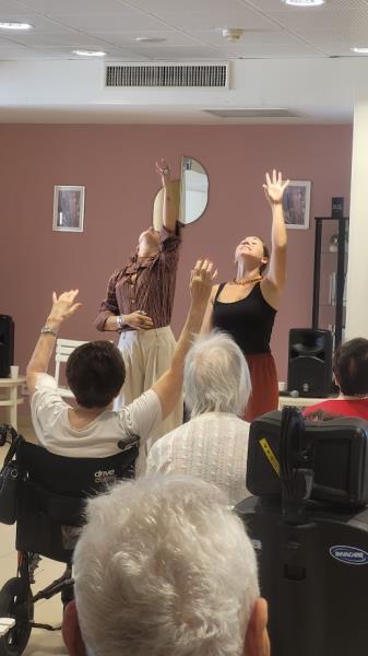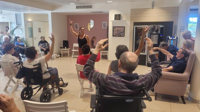 Lundi 15 septembre, les résidents ont participé à un atelier de danse adaptée dans le hall de la résidence. Animée par la danseuse Chloé, cette séance, ouverte à tous, a permis à chacun de bouger à son rythme dans une ambiance chaleureuse. L’atelier était accompagné en musique par une chanteuse, ajoutant douceur et émotion à ce beau moment de partage.