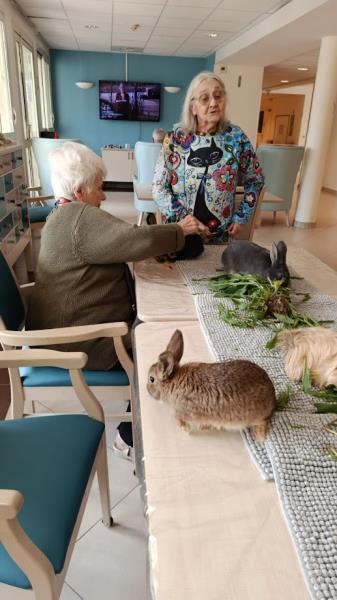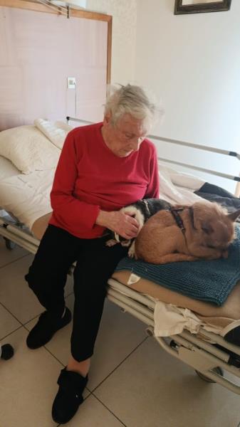 Enfin, la médiatrice est passée en chambre pour des rencontres individuelles et a vu quatre résidents chacun leur tour, offrant à chacun un moment privilégié avec les animaux.