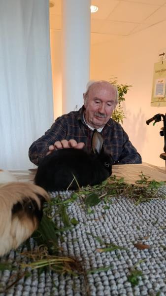 Cet après-midi, trois séances de médiation animale ont été organisées avec la présence de 2 chiens, de 3 lapins et de 3 cochons d’Inde.
