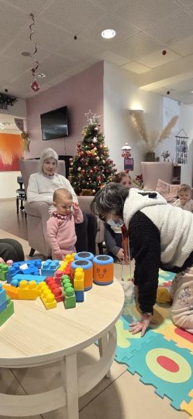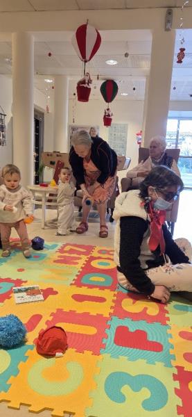 La résidence accueille toutes les deux semaines les enfants et les professionnelles de la MAM (Maison d’Assistantes Maternelles). Ces rencontres régulières, rythmées par des jeux, des chansons et des échanges, offrent de beaux moments de partage intergénérationnel et apportent sourires et bonne humeur aux résidents.
